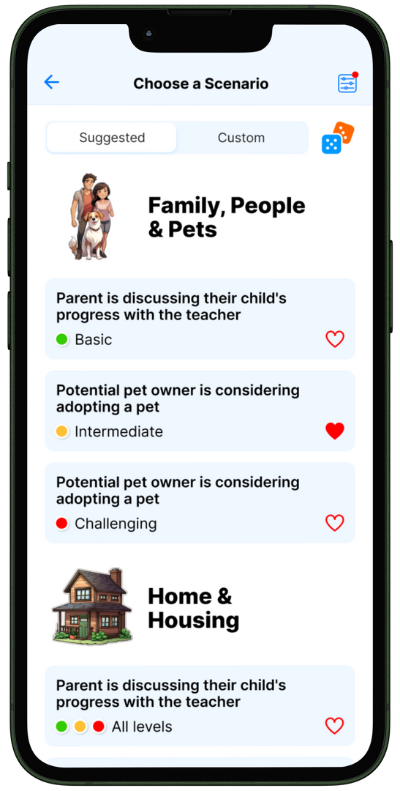 Bubblz's A.I. meets you where you are. It customizes each interaction to match your language level — from basic to advanced — ensuring engaging and effective practice.