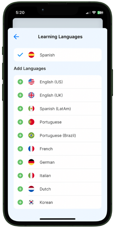 Bubblz currently supports English (US and UK), Spanish (Spain and Latin America), Portuguese (Portugal and Brazil), French (France), German (Germany), Italian, Dutch, Japanese, and Korean. We're continually expanding our language offerings, so stay tuned!
